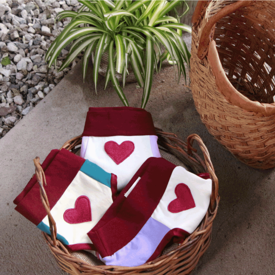 El modelo de bombachas elegido tiene la cintura más alta para mantener el útero contenido durante el ciclo, lo que ayuda a aliviar los cólicos. La idea es ayudarte a sentirte segura y cómoda en ese momento tan especial. Las bombachas están cosidas con hilos rojos para recordarnos la importancia de la sangre cíclica, que pulsa vida, un símbolo de fertilidad dentro y fuera de nuestro cuerpo. La parte interior de las bombachas es intencionalmente blanca para facilitar la relación con la sangre menstrual, con el flujo, lo que permite controlar el color y la textura de la sangre y, en consecuencia, la observación de la salud íntima.